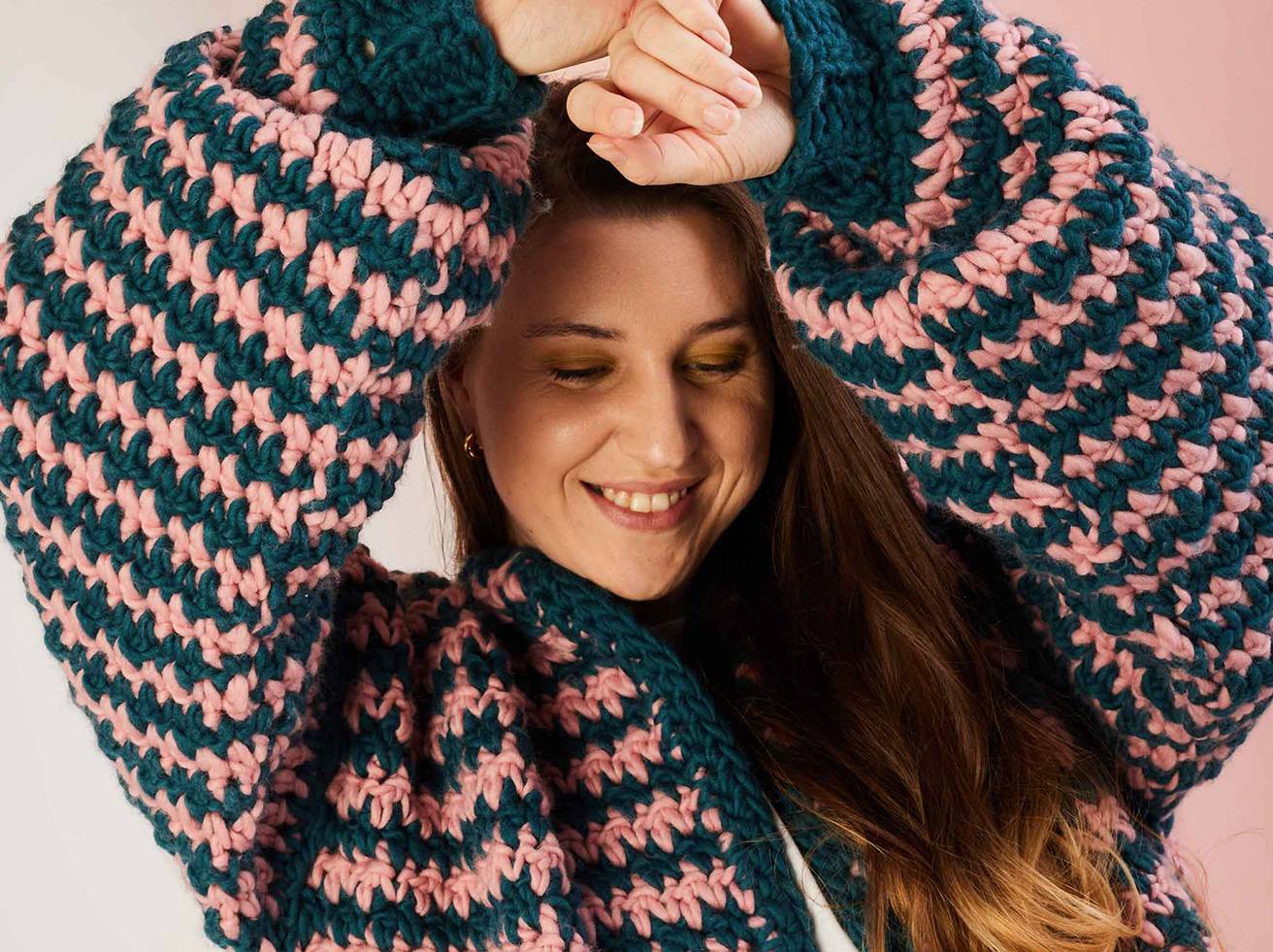 Create a chic, iconic look to add to your handmade wardrobe. With 9 pattern sizes available, you’ll find your perfect fit - just choose your dream colour-combination in our super-soft Chunky Wool yarn. Make a matching accessory with the Talland Houndstooth Cowl.