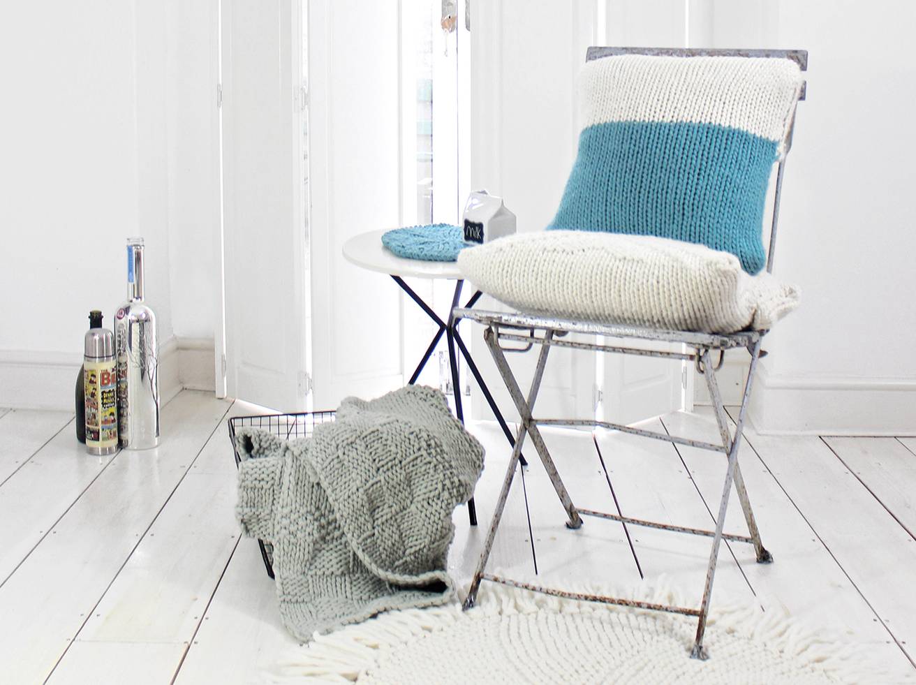 This circular rug is knitted flat on single-pointed needles and makes a contemporary addition to your home. Combined with a centre-swirl pattern and tassels, you'll have a fun project that knits up in no time.