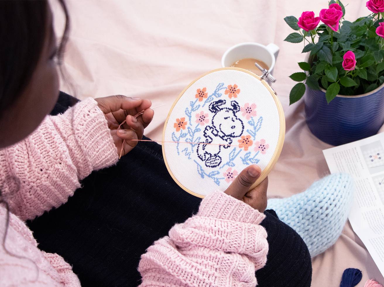 Do a happy dance with Snoopy as you bring him to life one stitch at a time. This all-in-one kit is also the perfect gift to give a little joy to a friend.